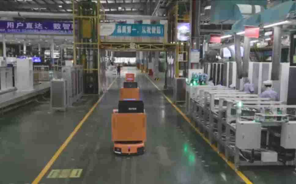 为车载冰箱物流配送打造的智能解决方案,,,,包含产中物流通过潜伏举升AMR搬运至线边,,,产后成品物流智能仓储,,,流程包含产中物流智能齐套入库,,,线边安灯叫料AMR智能配送至线边,,,成品入库、、、、出库,,,,通过无人堆高车机器人,,智能仓储管理替代人工作业管理,,,实现更高存储、、更高效率、、、、更具柔性化的解决方案。。